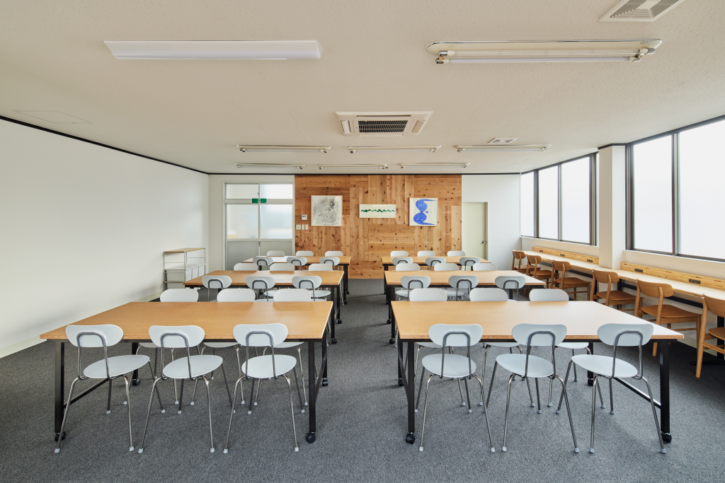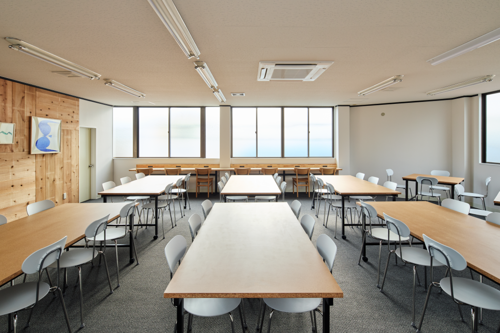 地域に根差した総合病院の従業員用休憩スペース・会議室の内装デザインと造作家具デザイン・コーディネートを行いました。もともと1階は備蓄倉庫、2階は空き店舗だった病院棟すぐ近くに位置する2階建てのビルを”はたらく場”の改善に活用できないかと始まった改修プロジェクトです。1階(82㎡)は休憩スペース、2階(75㎡)は会議室としてプランニング。従業員用としてだけではなく、地域の方が集うコミュニティスペースとしての役割も目指しています。