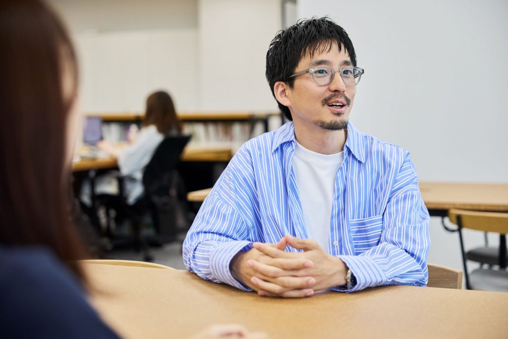 鳥居:オフィス全体のゾーニングも秀逸でしたね。今回のオフィスでは、資料を閲覧するエリア、打ち合わせができるエリア、集中するエリアと3つのエリアに分けていただいています。また、作業をするところは長机、コミュニケーションをとるところは丸テーブル、と分ける提案を受けました。形が違うというシンプルなことですが、それだけでもコミュニケーションの質が変わったことを実感でき、とても感動しています。