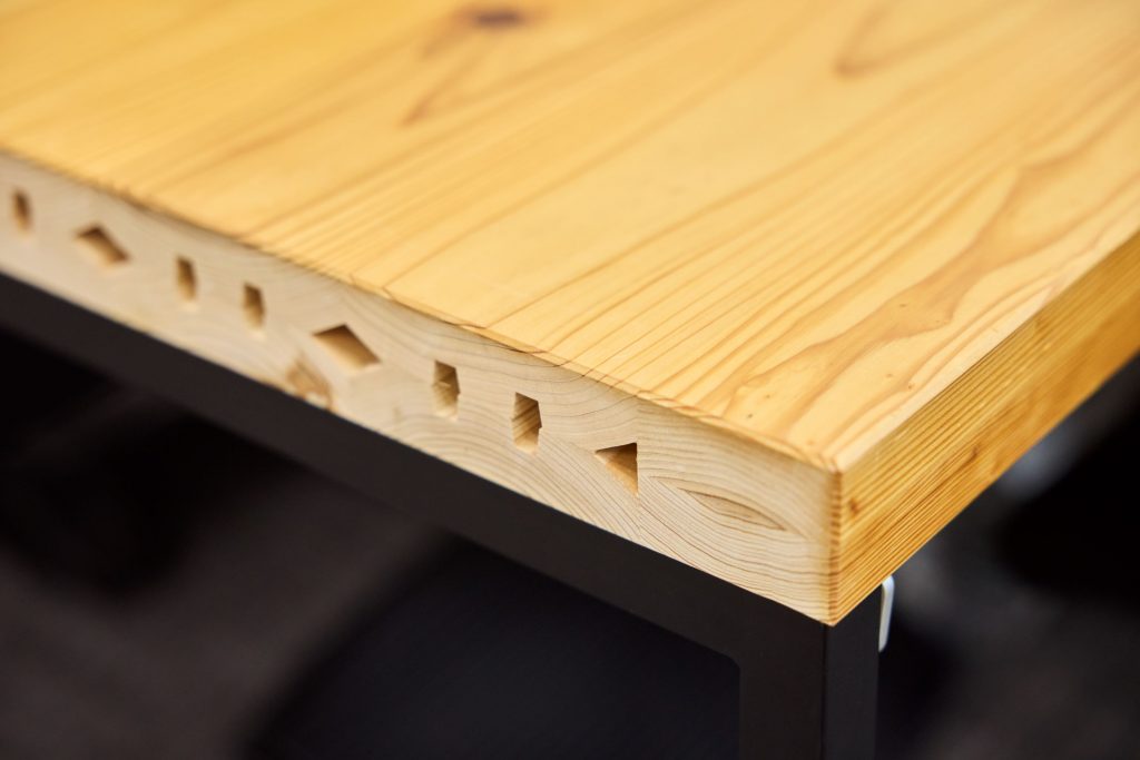 旧オフィスで使っていた「日本の木でできた家具」や棚板を活用している