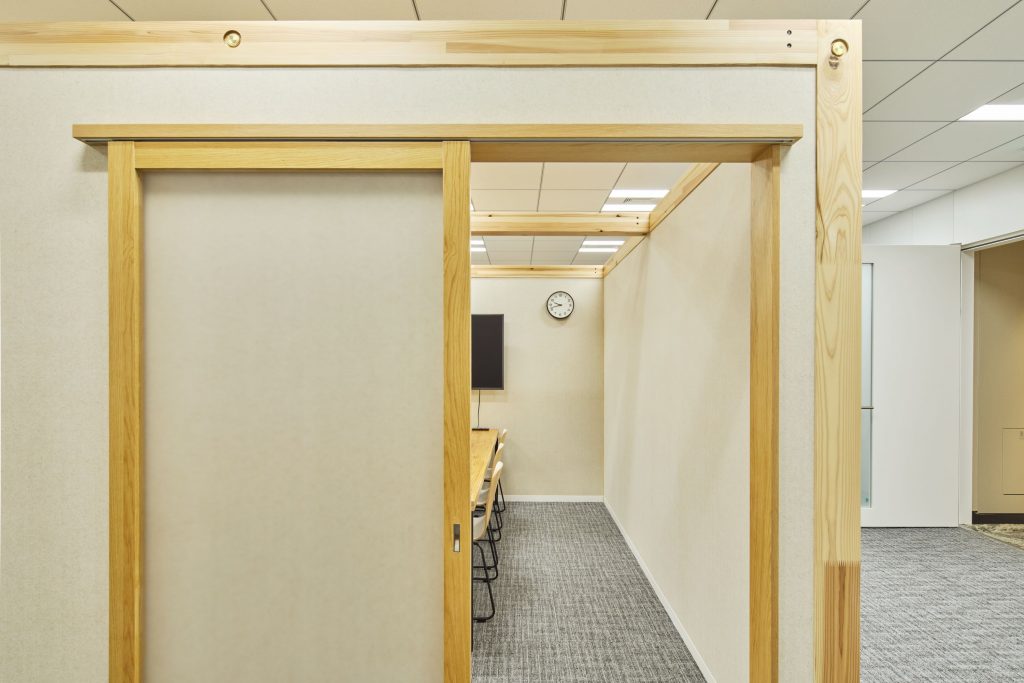 新設した小会議室も、あえて半個室にすることで、効率的に執務スペースの座席が確保できたり、空間に賑わいを与えたりと、良品計画さんならではの空間づくりが表現されたプロダクトだと思います。