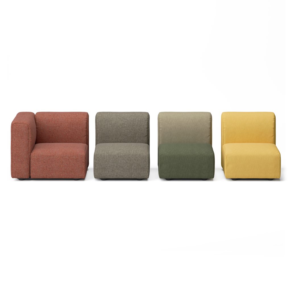 新たに対象の無印良品のチェアやソファをご購入いただく際には、購入時に生地を変更・指定することも可能です。オフィスのエントランスやサロンスペースにおすすめの上質な素材感の生地や、単調な色味になりがちな執務空間への彩りとなる色展開豊富な生地をご用意しています。企業のコーポレートカラーを反映したい、エリアごとにカラーでゾーニングしたいといったご要望にも対応し、空間づくりの幅を広げます。