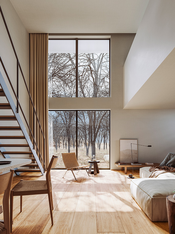 「木の家」に新仕様を追加しました。開放感溢れる一室空間に質感と陰影を