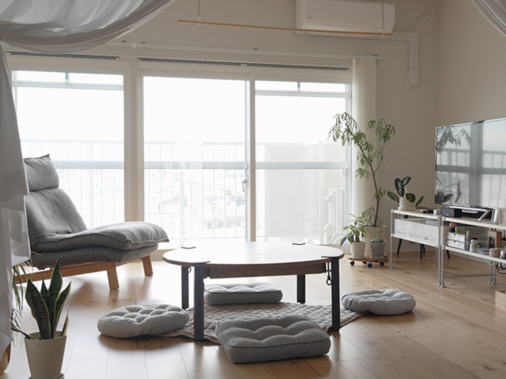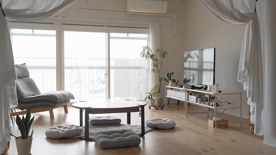 お部屋の中を拝見していて気付いたのが、どの家具も壁から離して配置されていること。