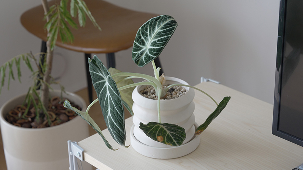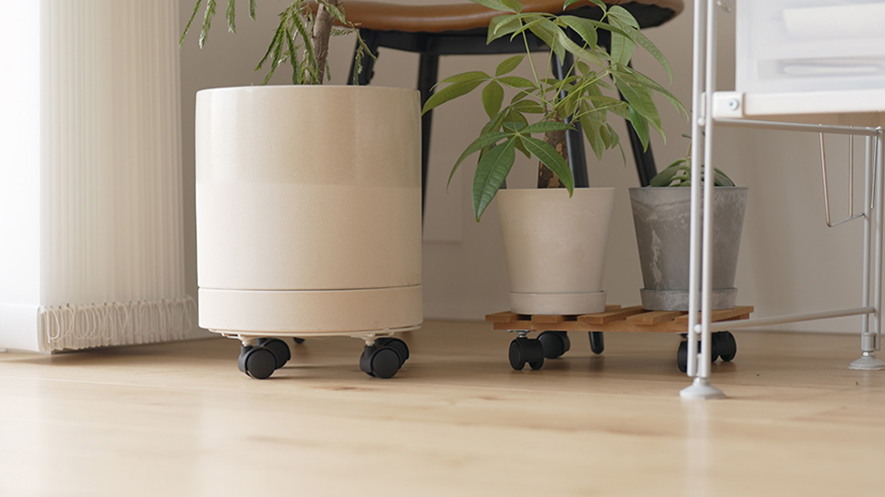 植物にはキャスターがついていて、床から少し浮いた状態になっています。