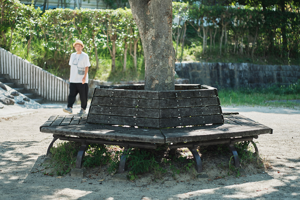 確かに。これは時間によって木陰の位置が変わるから360度ベンチなんですかね?笑。