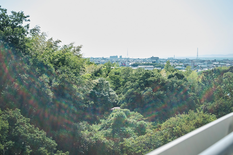 お邪魔しますー。住戸のバルコニー側は目の前が森ですね。緑が豊か。