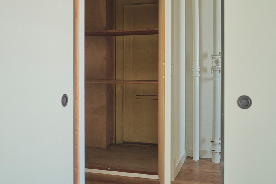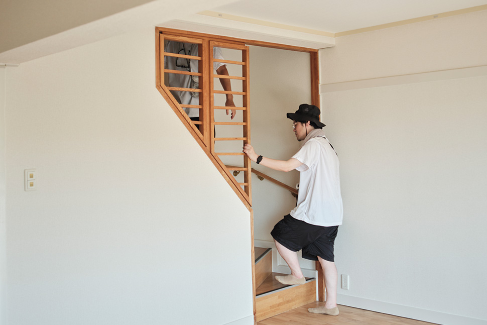 もしかしたら元々、上階下階が別々の住戸として設計されていたものを後から設計変更しているのかもしれないですね、、名古屋のメゾネット住戸もそうでした。もしくは後からまた2つの住戸としても使えるように玄関ドアも残しておいたのかもしれないですね。いずれにしても、知らずに収納を開けて玄関ドアが出てきたらびっくりしちゃいますよね、、違う世界への扉みたいで笑。