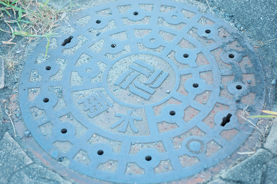 団地マニアではよく語られる、URさんの前身の日本住宅公団時代のマークが入ったマンホールです。この風車マークは「住宅・都市整備公団」時代のものですね。