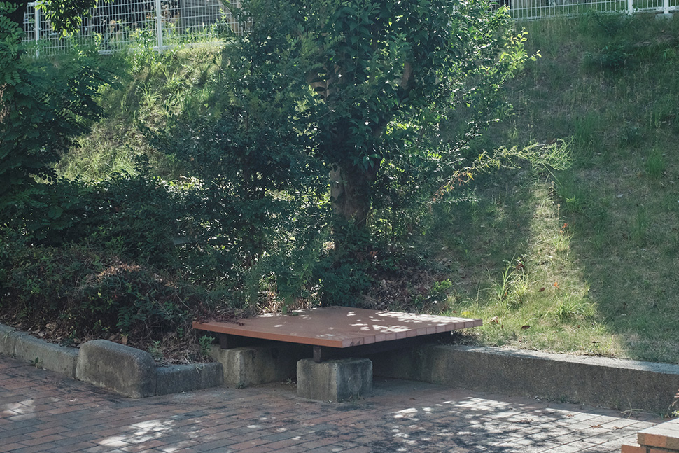 あっちの公園には木を囲ったベンチがあるよ。だいぶ年季が入ってるな、、やっぱりメッシュのベンチの方が圧倒的に座りたい気になるな・・。