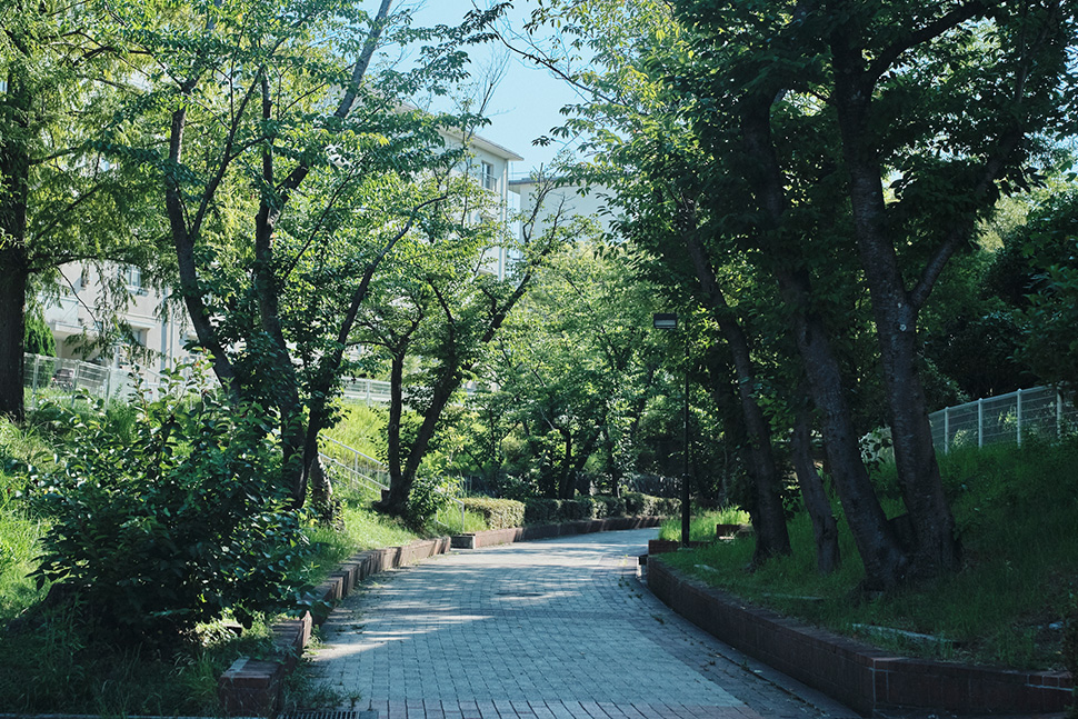 この遊歩道があるだけで、団地全体の価値が上がっている気がするくらい良い道やね。