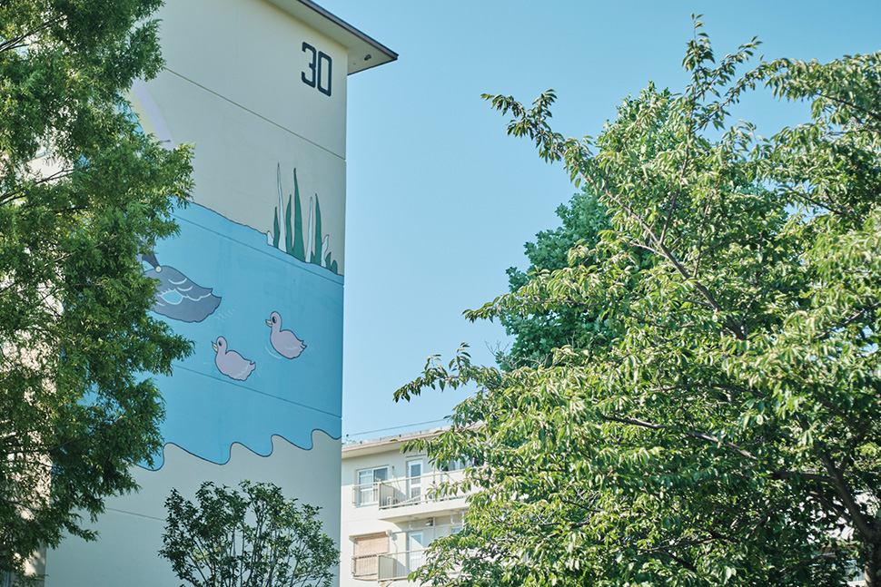 公園もたくさんあるし、良い団地やね。あの壁の横に絵が描いてあるのは?