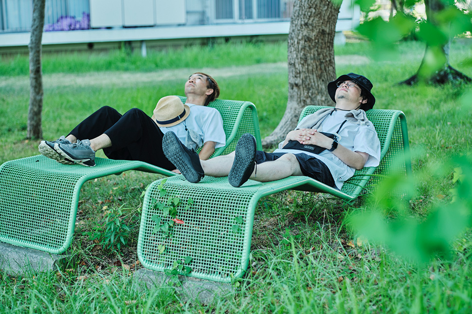よろしくお願いします。改めまして2人の馴れ初めですが、南出さんは松本と同じく大阪出身で、岡山県立大学デザイン学部の先輩でかつサッカー部の先輩で全然頭が上がらない人です笑。