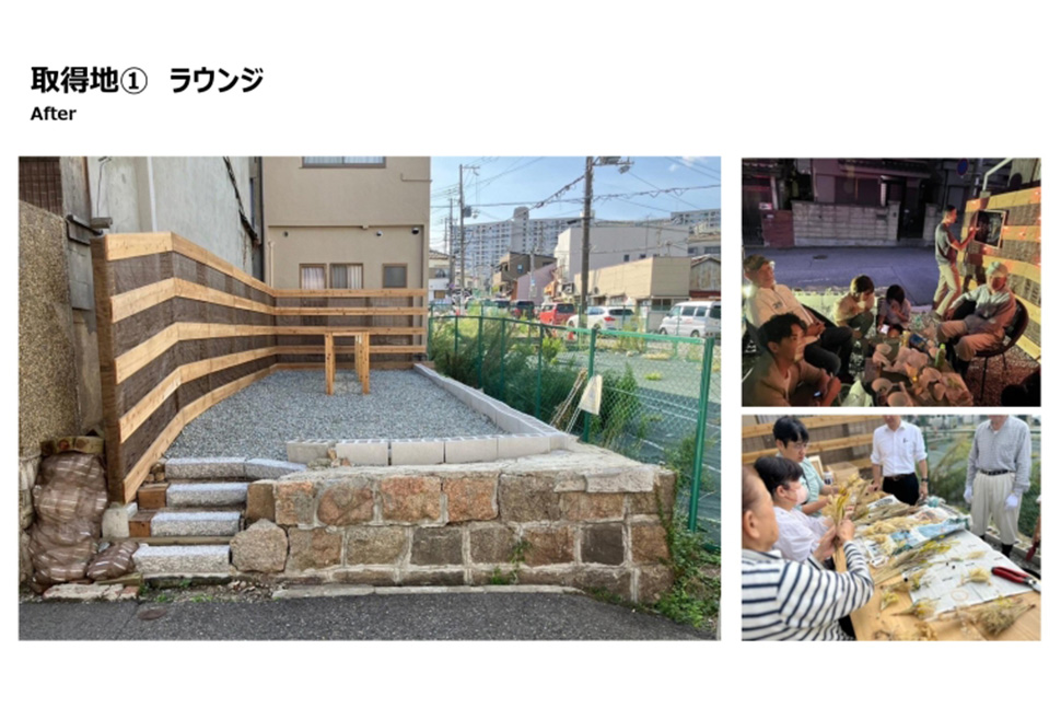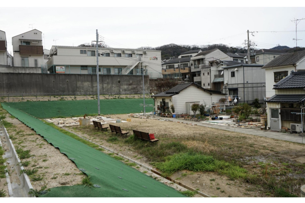 神戸市さんの事業になるのですが、道路が拡幅されるのに合わせ、一部住宅がなくなり、余った土地をURで取得させていただきました。ただ、道路が整備されるまで少し時間がかかるため、その間どのようにこのすきまを有効活用しようか考えました。