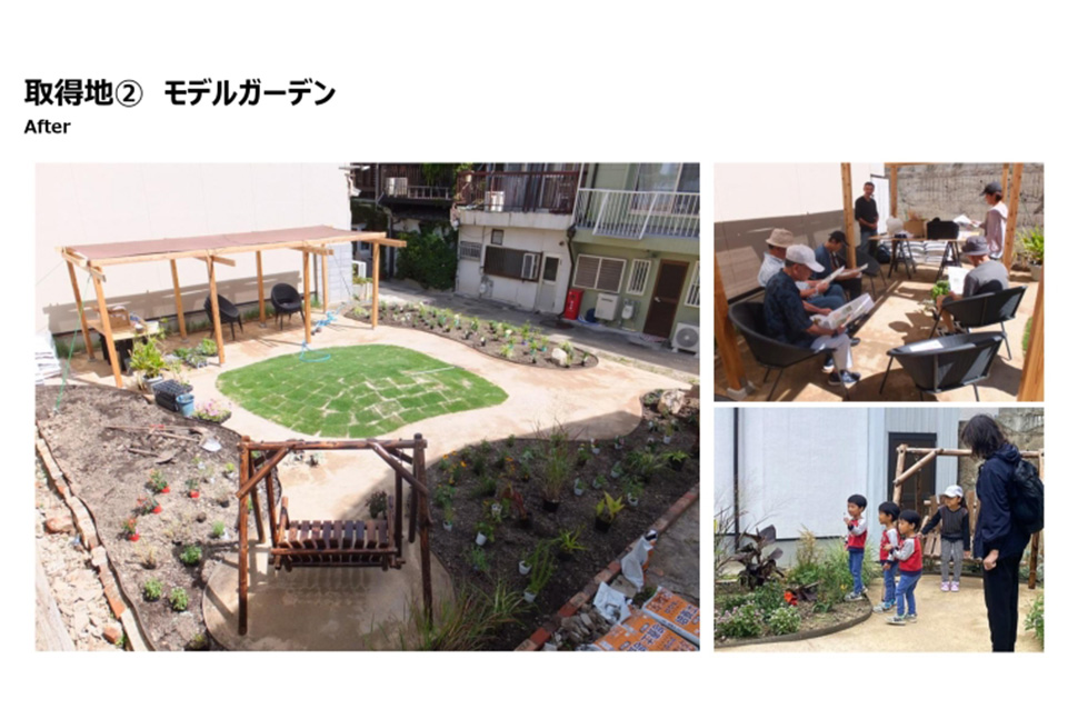 こちらも同じく淡路景観園芸学校さんと連携し、モデルガーデンを園芸学校の学生さんに整備していただき、いろいろなハーブを植えました。今はこちらの資料よりも緑豊かになっていますが、ここも周りが住宅に囲まれていて、すきまができたことによりパッと開けた場所になっています。
