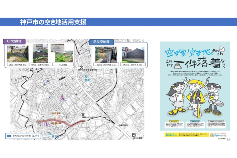 以上がURのまちのすきまを活用する取り組みの紹介となりますが、神戸市さんの制度に支えて頂いていることが大きく、神戸市の空き地活用支援のご紹介させていただきます。