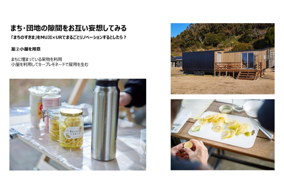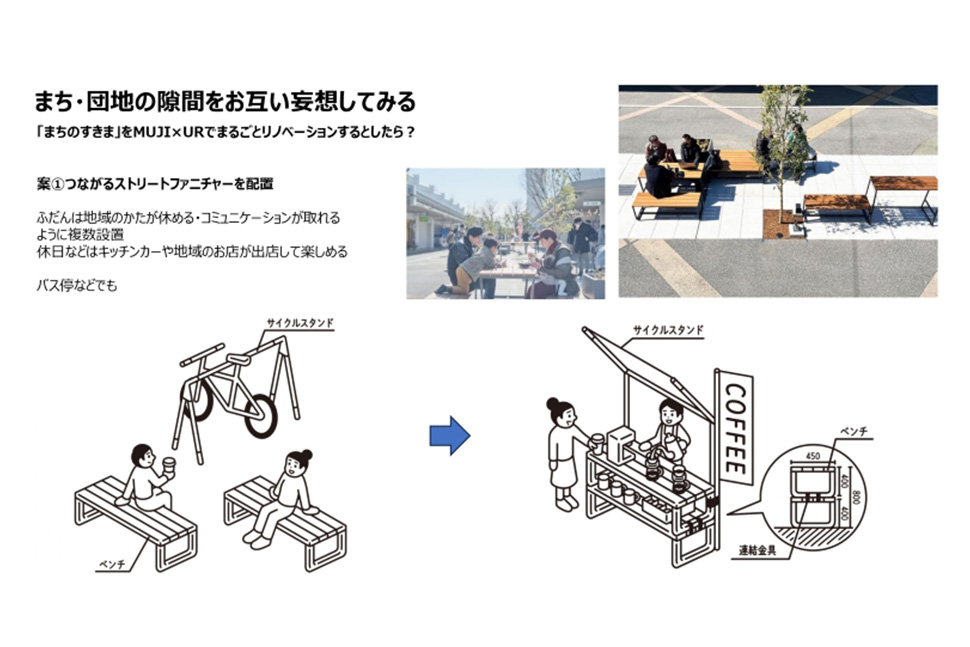ありがとうございます。実は先にお題をいただいていたので、模範解答と思っていただけたらと思います。まちのすきまをMUJI×URでまるごとリノベーションをするとしたらとどうするのかを考えてみました。