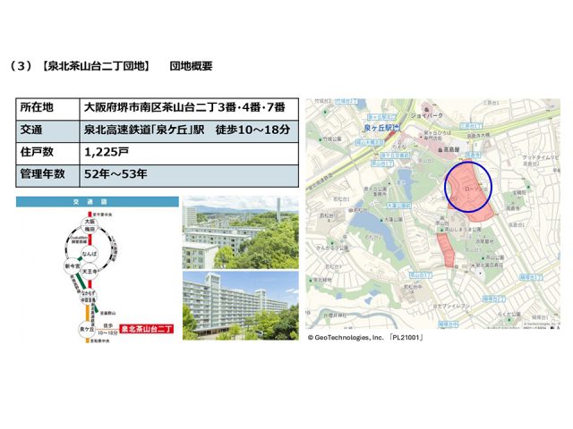まず1つ目が泉北茶山台二丁団地です。大阪府堺市にある団地で、駅周辺のショッピングモールには百貨店も入っており、買い物には不便のない環境です。