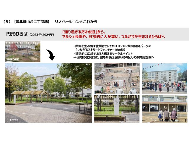 MUJI×URでは、団地まるごとリノベーションを今後も続けていきたいと思っています。プロジェクトの目指すところは、今日お話しをさせていただいたような共用部のもったいない場所を、もったいなくない場所にしっかりリノベーションをすることで、それをきっかけに住民さんたちの「使いたい」という思いをどんどん増やしていきたいです。