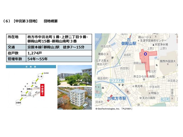 この中宮第3団地でリノベーションを行ったのは、資料の青丸のところになります。