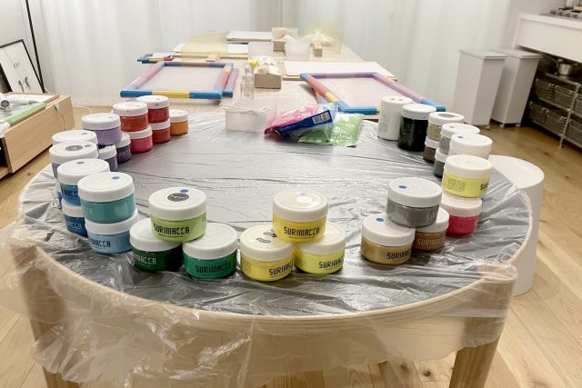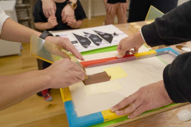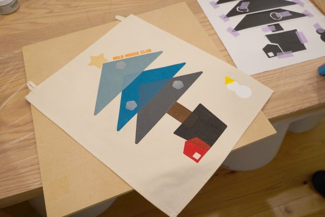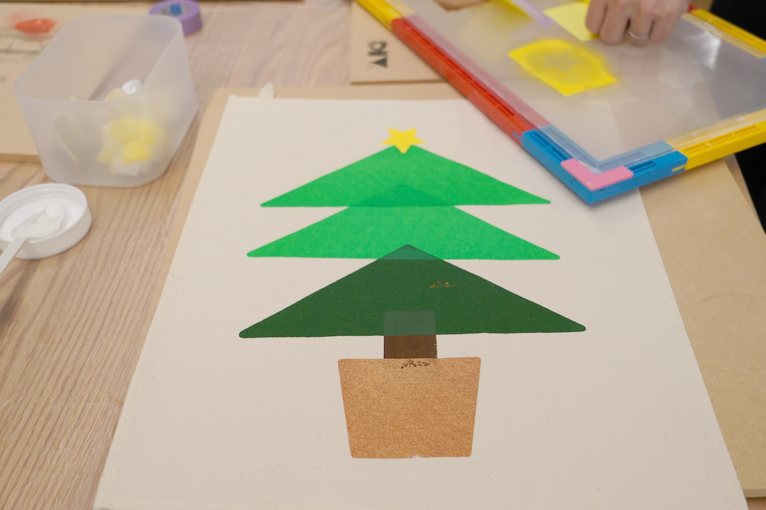 今回のタペストリーつくりは”シルクスクリーン”でクリスマスツリーを模した図柄を好きな色で製作しました。これまでのイベントと違い、私自身も初めての体験でしたのでみなさんと同じ目線で楽しむことができました。