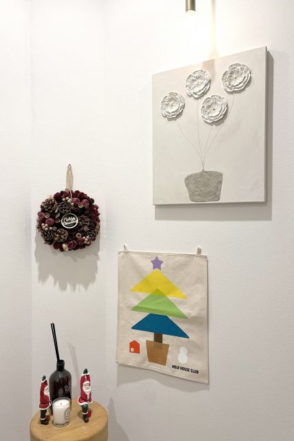 少し早いですが、クリスマスリースなどと一緒に飾ってみました!