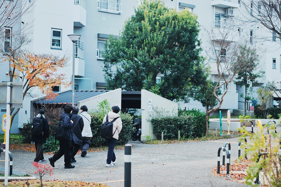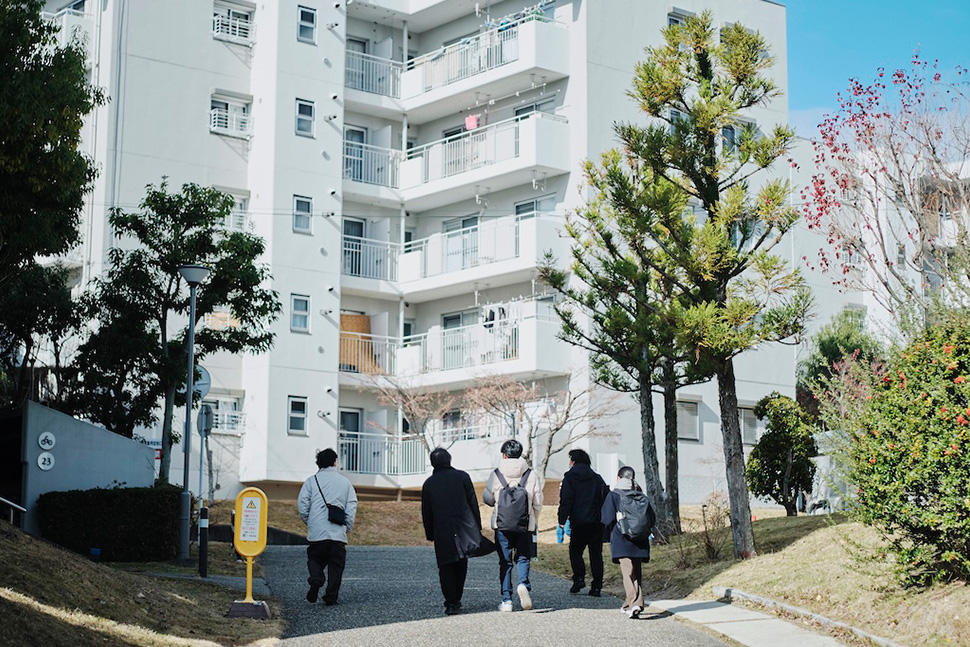 12月、寒さが増し時折見せる日差しの中、団地の中でも珍しい特長的なT型住棟が並ぶ「平城右京団地」にて、9回目のお散歩レポートは緩やかにスタートしました。