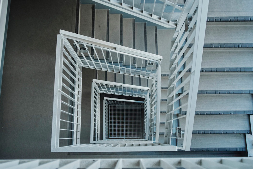 住棟外観は、欧米のアパルトマンのような雰囲気でしたが、階段室共用部も同じような装いで、日本ではないような雰囲気ですね。