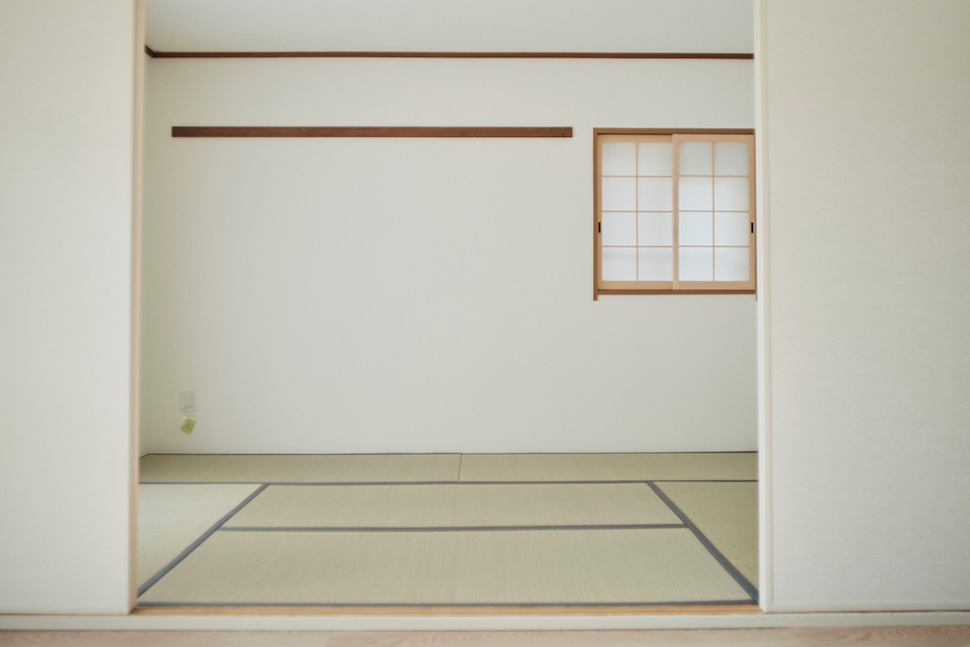 中はコンパクトですが、洋室と和室があって、透明な折戸を開けると、緩やかにつながりますね。