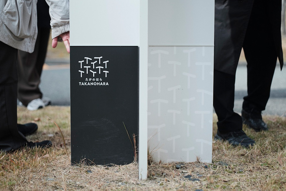 そういえば、この案内サインの足元の模様ですが、高の原のTでもあり、住棟の形のTでもあり、かわいいですよね。さらに案内サイン自体も上から見るとT型ですね。
