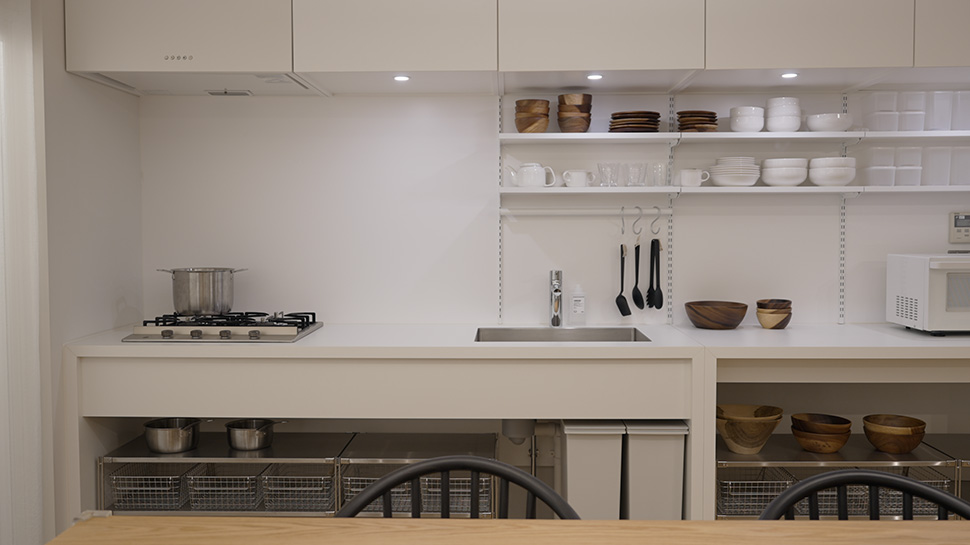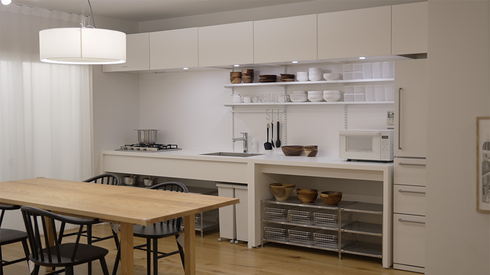 キッチンは壁付けタイプ。MUJIキッチンは壁付型と対面型があります。