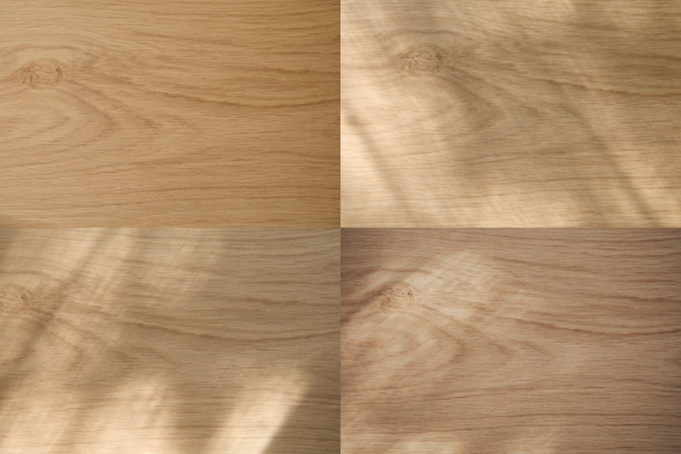 同じ板材ですが、光によって表情が変わります