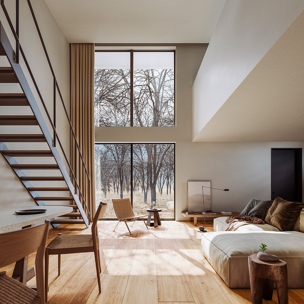 この「距離や光によって表情が変わる壁」は、空間全体に落ち着いたリズムをもたらし、ストレスの少ない心地良さをつくり出します。