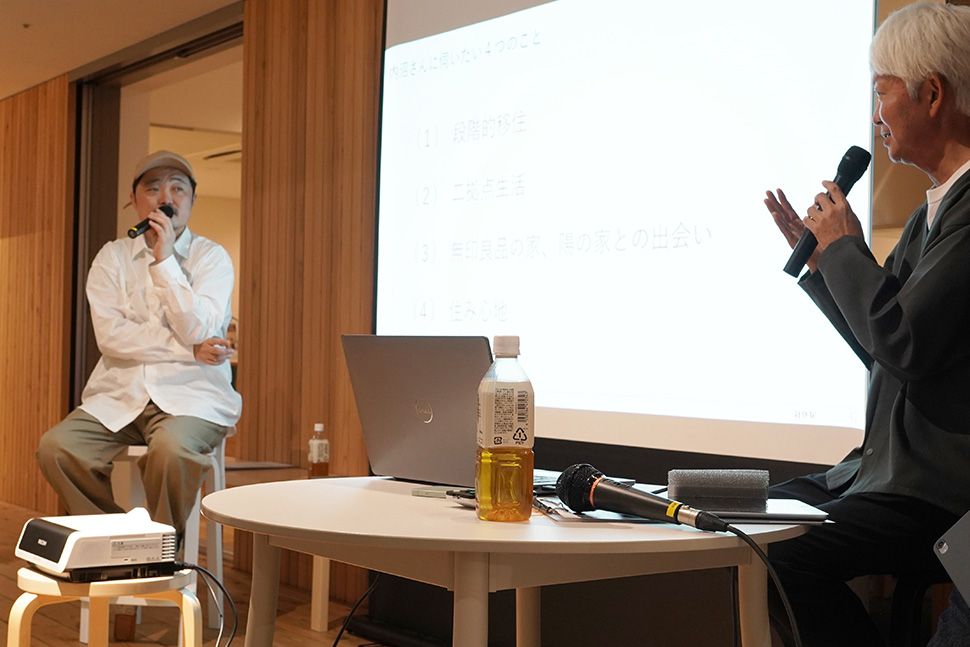無印良品の家 東京有明センター内にある「陽の家」を舞台に、NUMABOOKS代表でありブックコーディネーターの内沼晋太郎さんと、株式会社MUJI HOUSE の川内浩司が、家づくりと二拠点生活について語り合うトークイベントを開催いたしました。