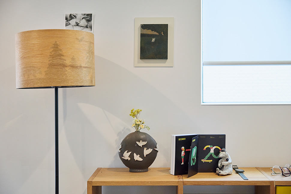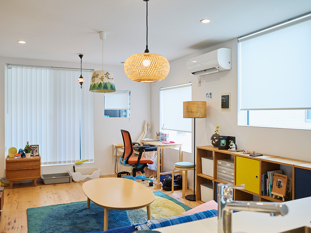 「もともと、無印良品の商品が好きで、無印良品の家のことは知っていました。日々忙しいこともあり、家を建てるなら、こだわらなくてもかっこいい家にしたかったので、いい意味で仕様が決まっていて、ゼロから自分で考えるよりも美しく仕上がる、無印良品の家がぴったりだと思いました。無地のキャンパスのようで、アーティストのパートナーのセンスが活きるのも良かったですね」と、当時を振り返ります。