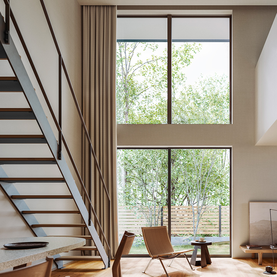 窓を「部材」として見せるのではなく、光と景色のための開口であることの再認識です。