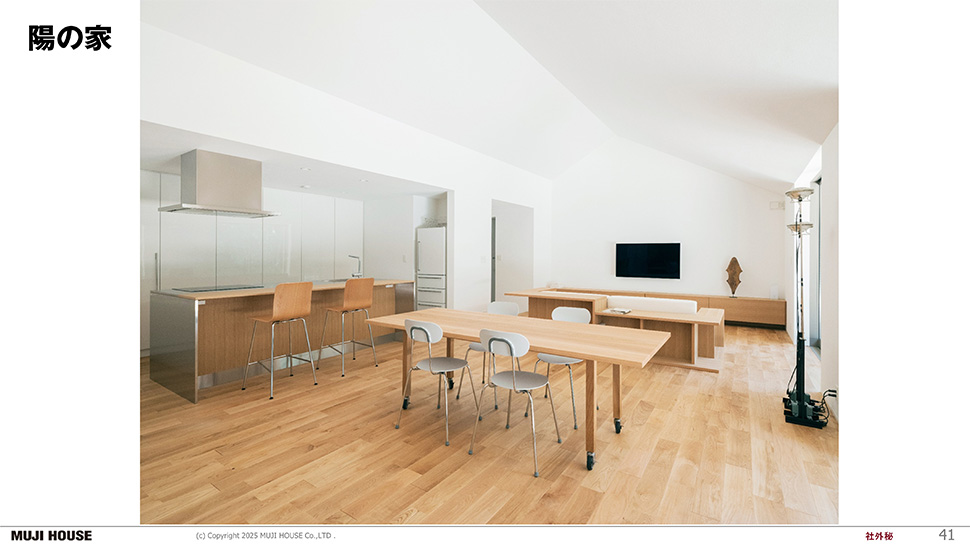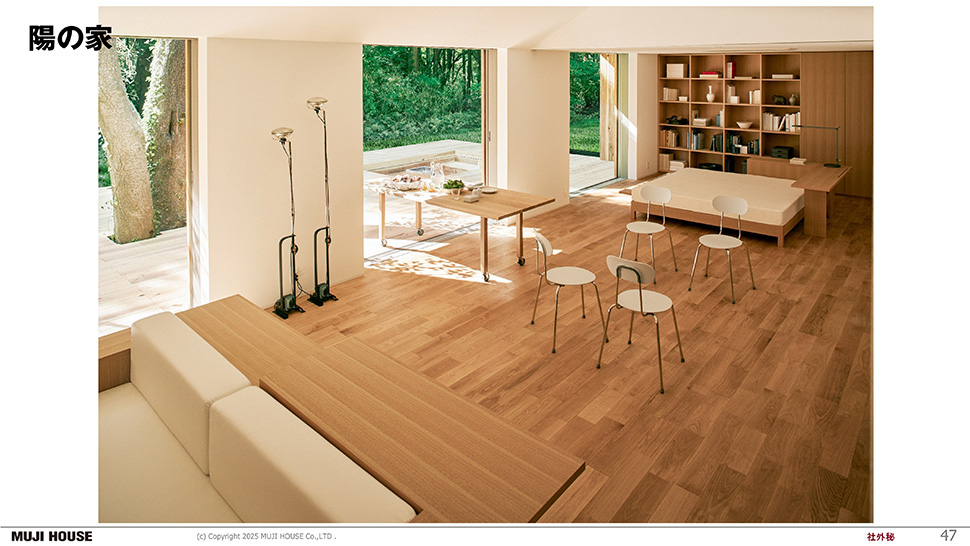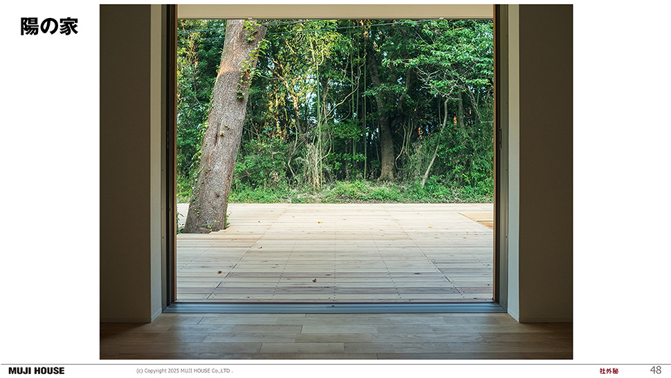 無印良品の家は、2004年の「木の家」、2007年の「窓の家」、2014年の「縦の家」、2019年の「陽の家」と、商品は増えてきましたが、数は多くありません。普通のハウスメーカーさんは毎年たくさん新商品を出しますが、私たちは「永く使える」と言っているのに、商品がコロコロ変わったら説得力がない。考え尽くしてつくったものは、できるだけ長く売り続けたい。木の家も窓の家も、発表当時のデザインのまま、いまでも共感していただけている。そこも大切にしています。