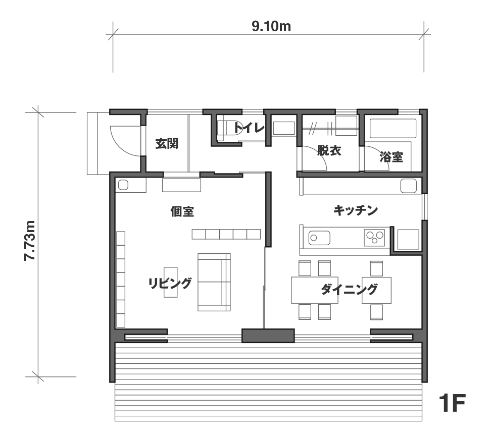 そこで「変えられる」を足した上で、行き着いた形が「一室空間」です。