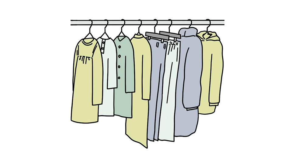 パンツが好き、ワンピースが好き、セーターが好き、など、持っている衣類のバランスは人それぞれです。何をよく買うのか傾向を把握しておくと、クローゼットの使い方も計画的に決めることができます。