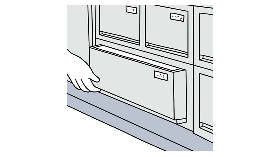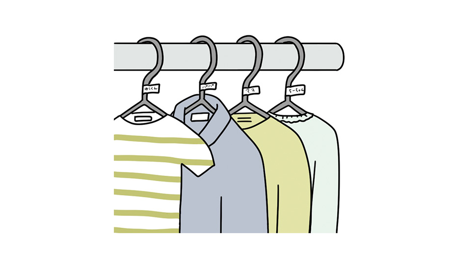 ハンガーや引き出しに、衣類の種類や身に着ける季節、がわかるような印をつけておきます。「これはコート用のハンガー」「ここは靴下用の引き出し」というように収納アイテムの使い道や片づける場所を見えるようにしておくことで、整頓への意識が強まり、適当な場所へしまうことも少なくなります。