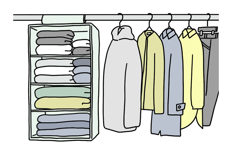 セーターなどの分厚い衣類は、掛けると伸びて型崩れしてしまうことがあるので、場合によっては畳んだ方が良い場合もあります。また、薄手の衣類やインナー類は、コンパクトに畳んでも比較的取り出しやすいため、スペースを節約するために畳んでしまった方がよいでしょう。