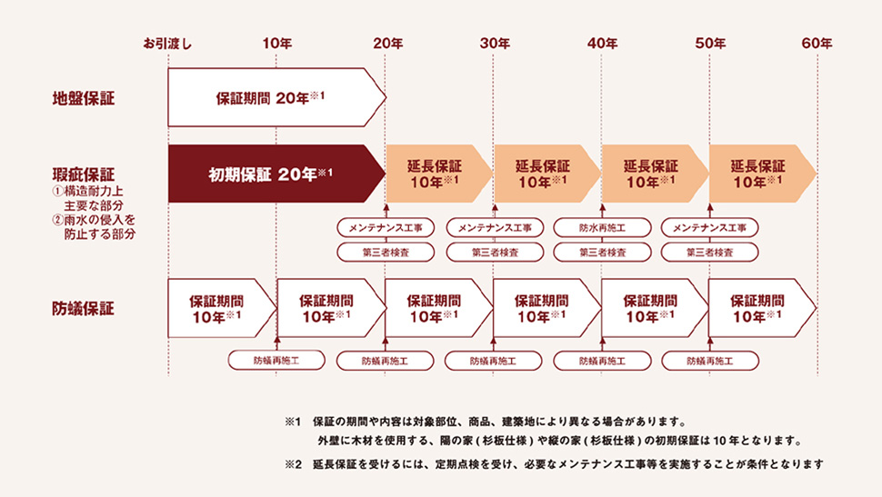そしてオーナー様にもっと安心してお住まいいただくために、最長60年の長期にわたる保証制度をスタートしました。