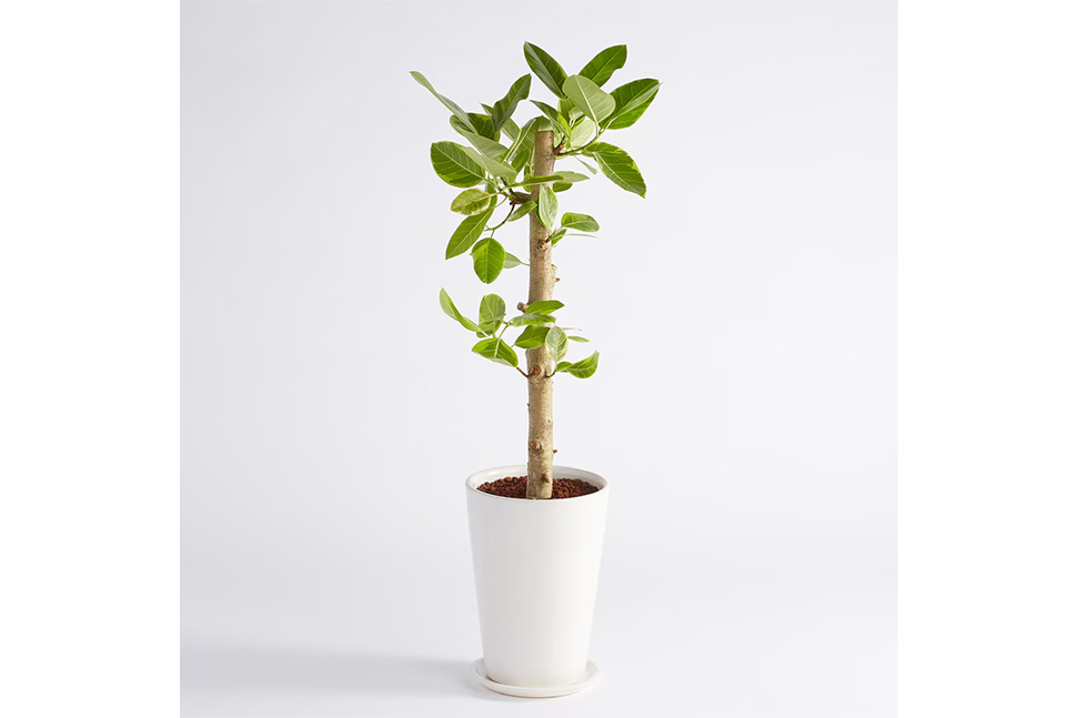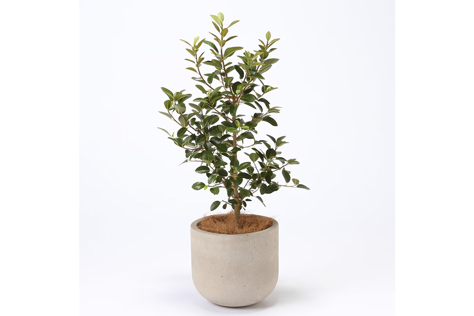 「ゴムノキの中でも葉が小さめなので、どんな場所に置いてもなじみやすいビジュアル。華奢な幹がくねっとしている姿もお部屋のアクセントになります」