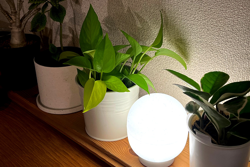「グリーンのそばに小さな灯りを置いてあげると、雰囲気が出ます。葉の揺れる様子が影に映るときれいで、眺めているだけで癒されます」