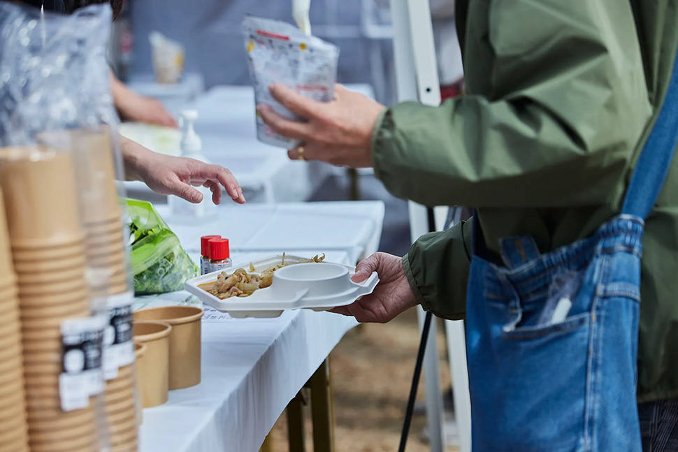 団地内にある「Anna Kitchen」の協力により、ベトナム料理がふるまわれたほか、豚汁や防災食品(アルファ米・保存水)の実食も行われました。