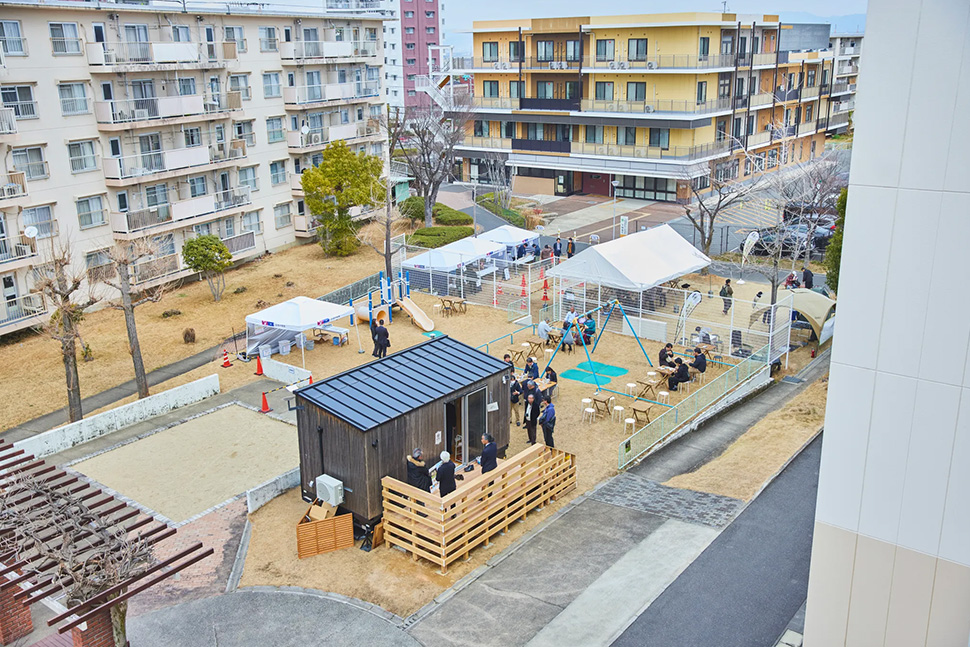 本実証実験は男山団地をもって終了となります。まちなかの広場や公園に設置し、平時にはコミュニティを育む拠点として、有事の際には一時的な避難場所として本格的に活用してもらうため、今回の実証実験で得たものを今後の商品開発に活用してまいります。