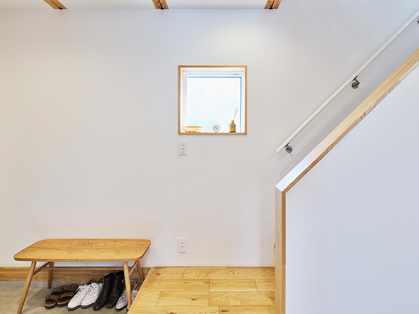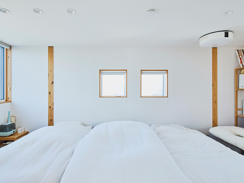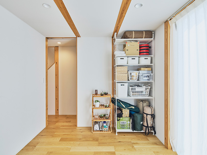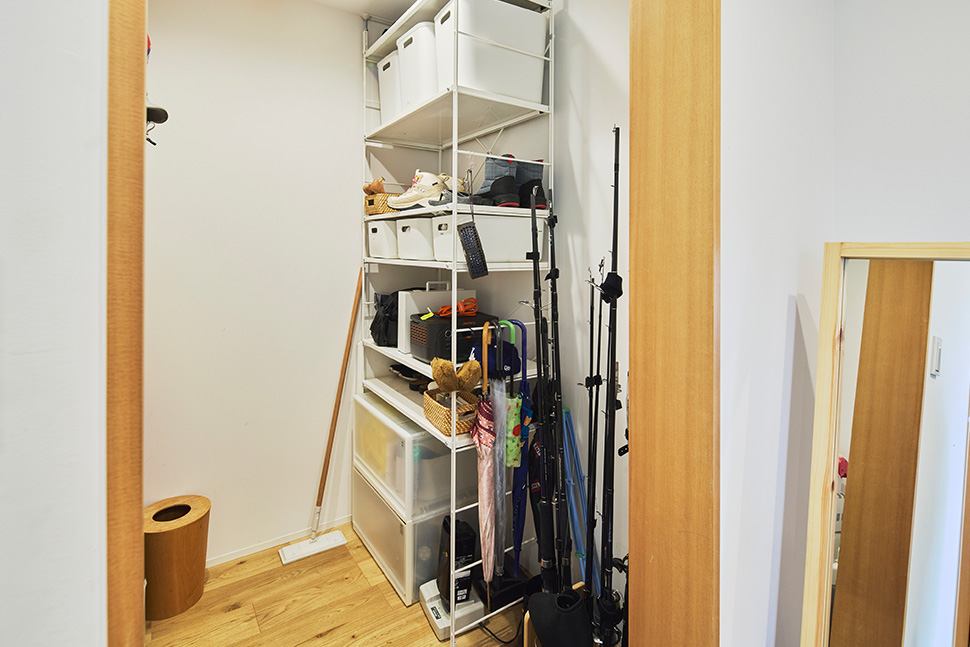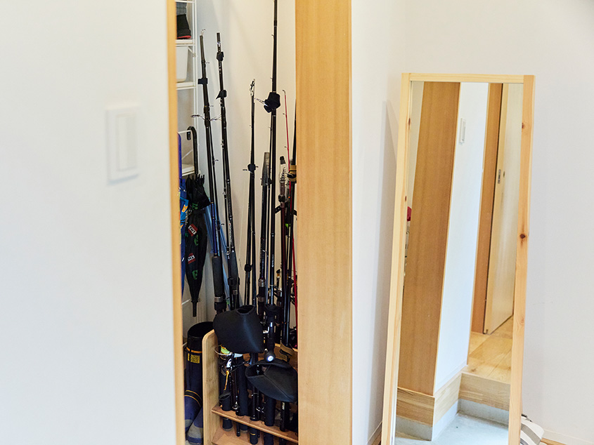 「3階の寝室には扉を設けて、周りから独立したプライベート空間になるようにしました。あと、玄関の横に収納スペースを設けました。ここに釣り道具を一式置いて、釣りにすぐ出かけられるようにしたかったんです。提案してもらった間取り図にこちらの要望がきちんと組み込まれていたので、スムーズに進められました」(ご主人)