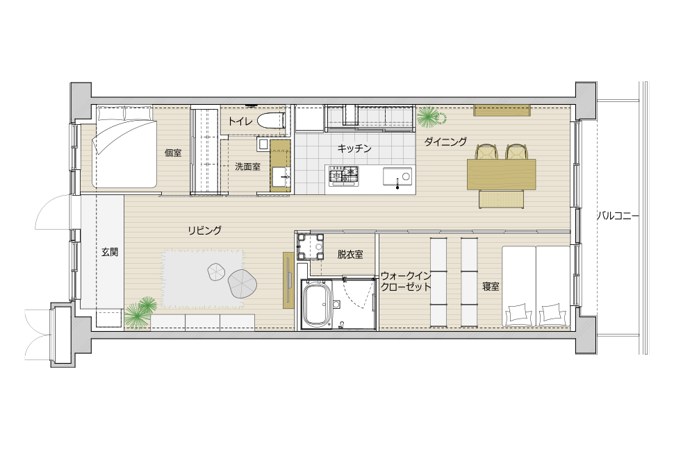 遊びに来るご友人たちからも、居心地の良さに驚かれることも多い、と嬉しそうに語るおふたり。日々の生活でも「余白」の多い間取りをフルに活かしています。