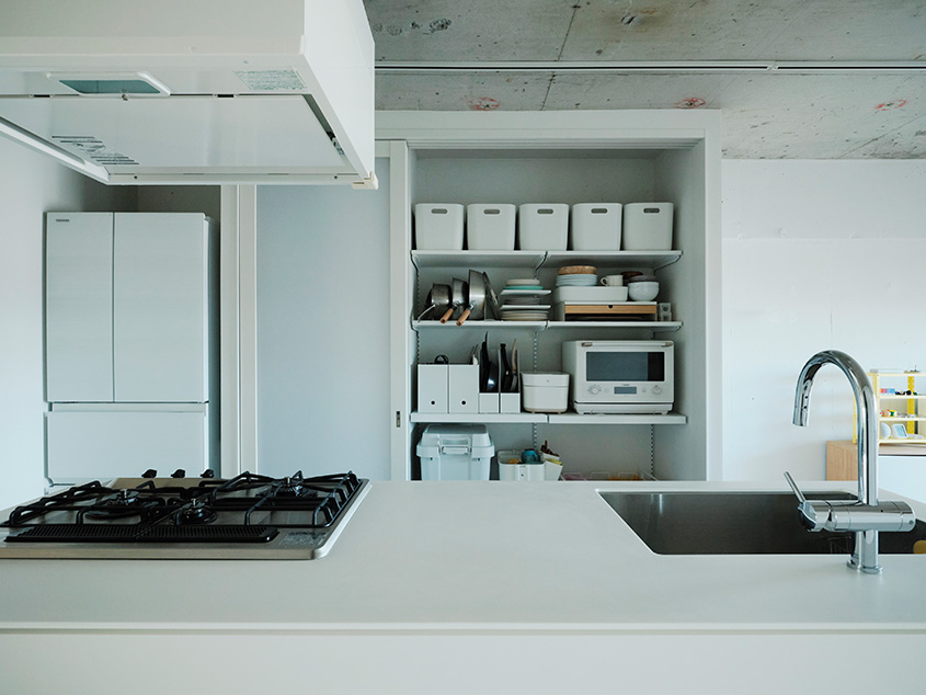 住まいの真ん中にキッチンを設けて、家族が自然に集えるようにしました