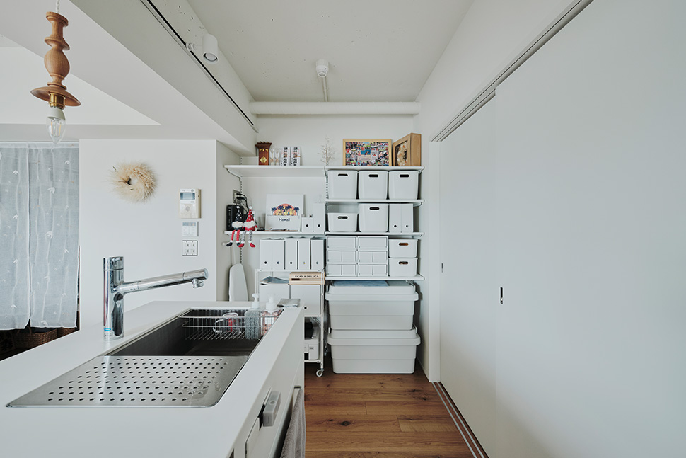 さいたま市の住宅街に建つマンションの一角にあるI邸は、「MUJI INFILL 0」でリノベーションされた住まい。白を基調とした室内は、清潔でセンスのよい雰囲気で統一されています。