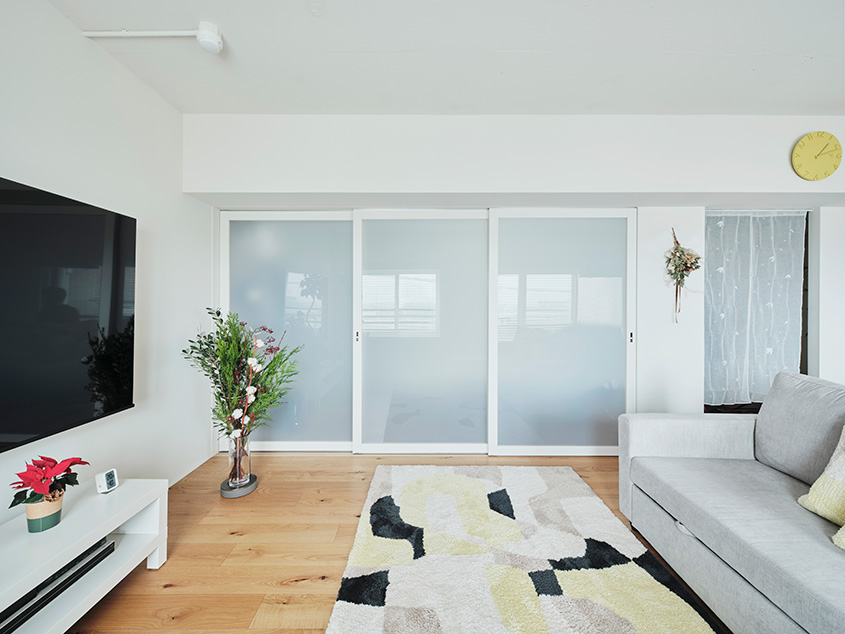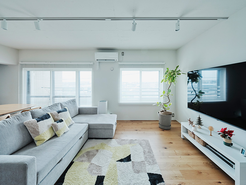 「お互いに感動したのが、インナーサッシと断熱材が標準仕様としてついていることでした。住まいとしての性能に気配りしたリノベーションだと感じました。シンプルで清潔感のある内装も私たちが暮らしたい住まいのイメージに合っていました」